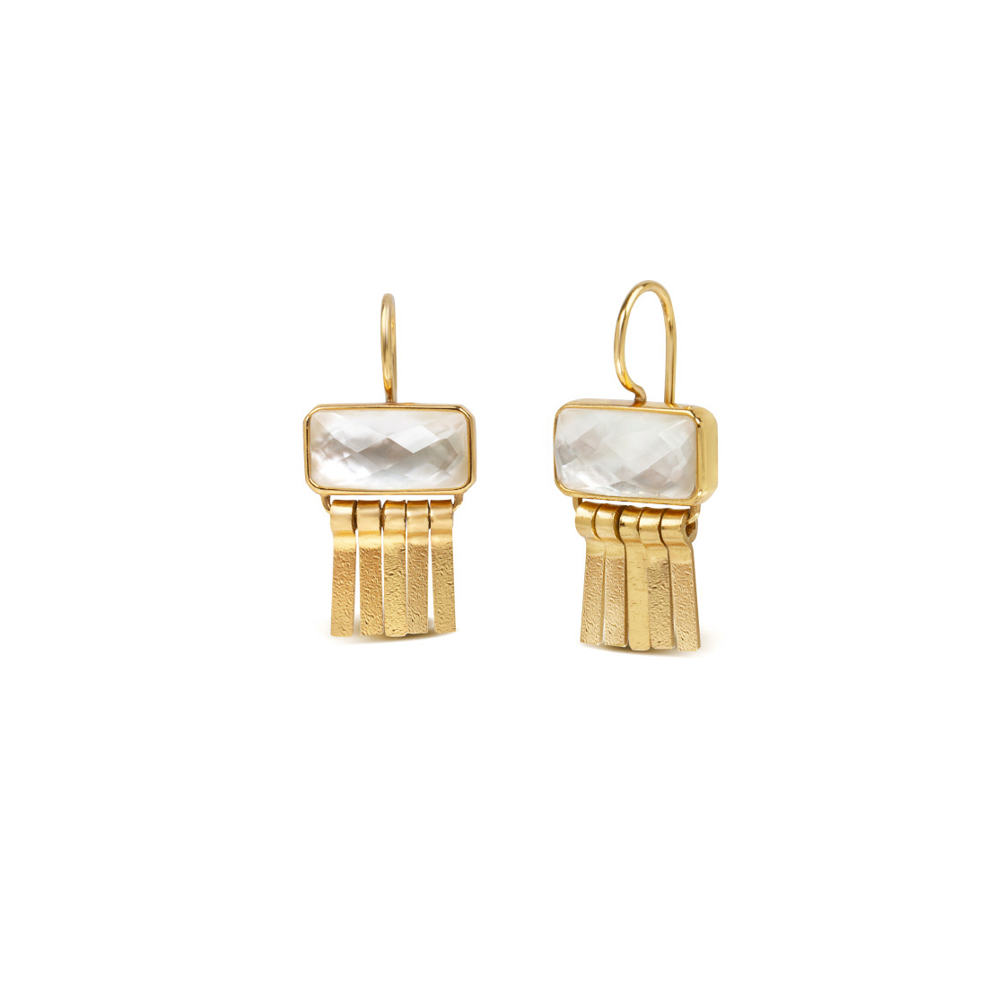 Moonlit earrings featuring a captivating moonstone with five gold rays artfully moving beneath. Elegance and sophistication in this harmonious dance.
