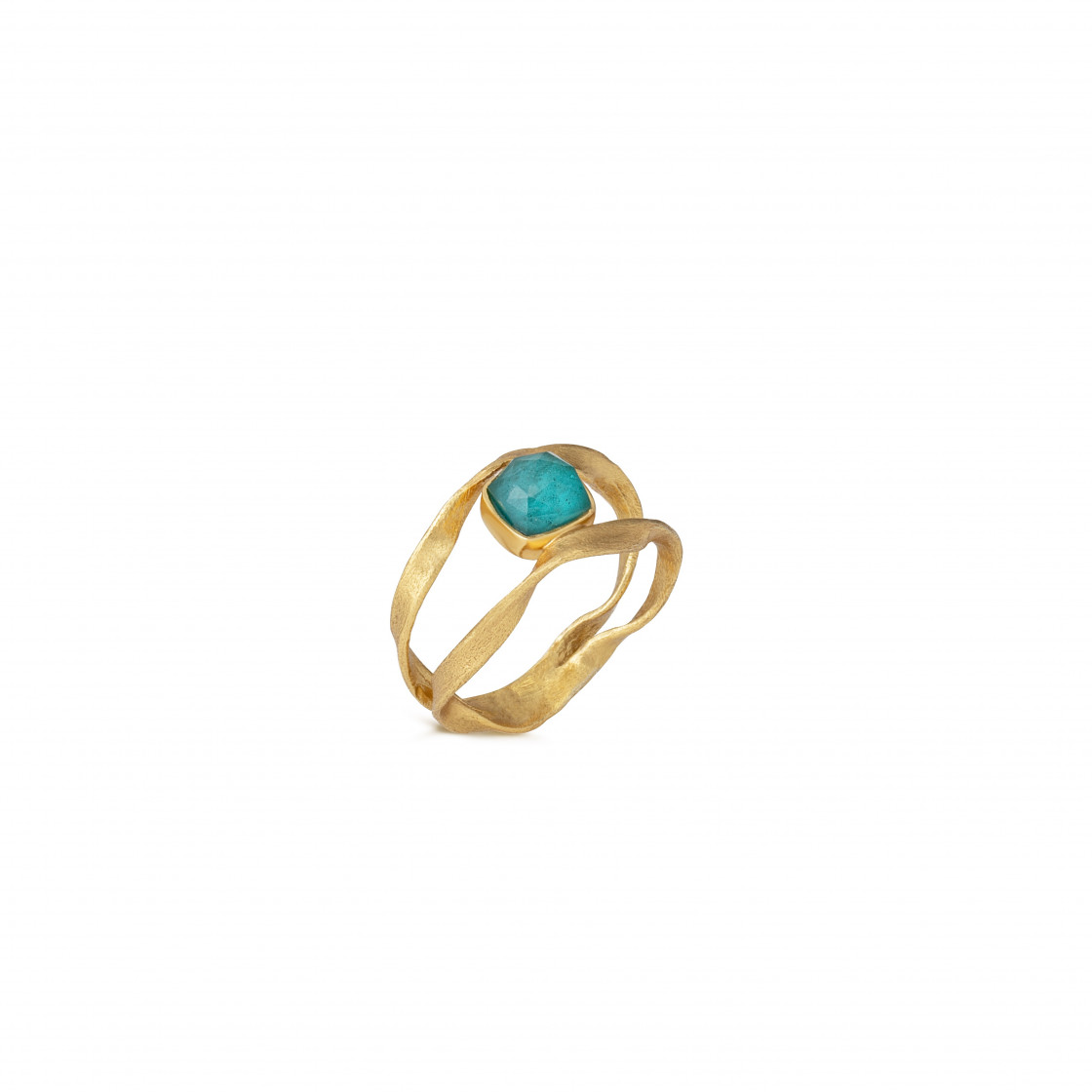 Double gold ring with a square Amazonite - Quartz doublet stone, set in a handmade bezel.